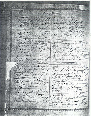 | Thomas Stephens Family Bible page showing Mary's birth |